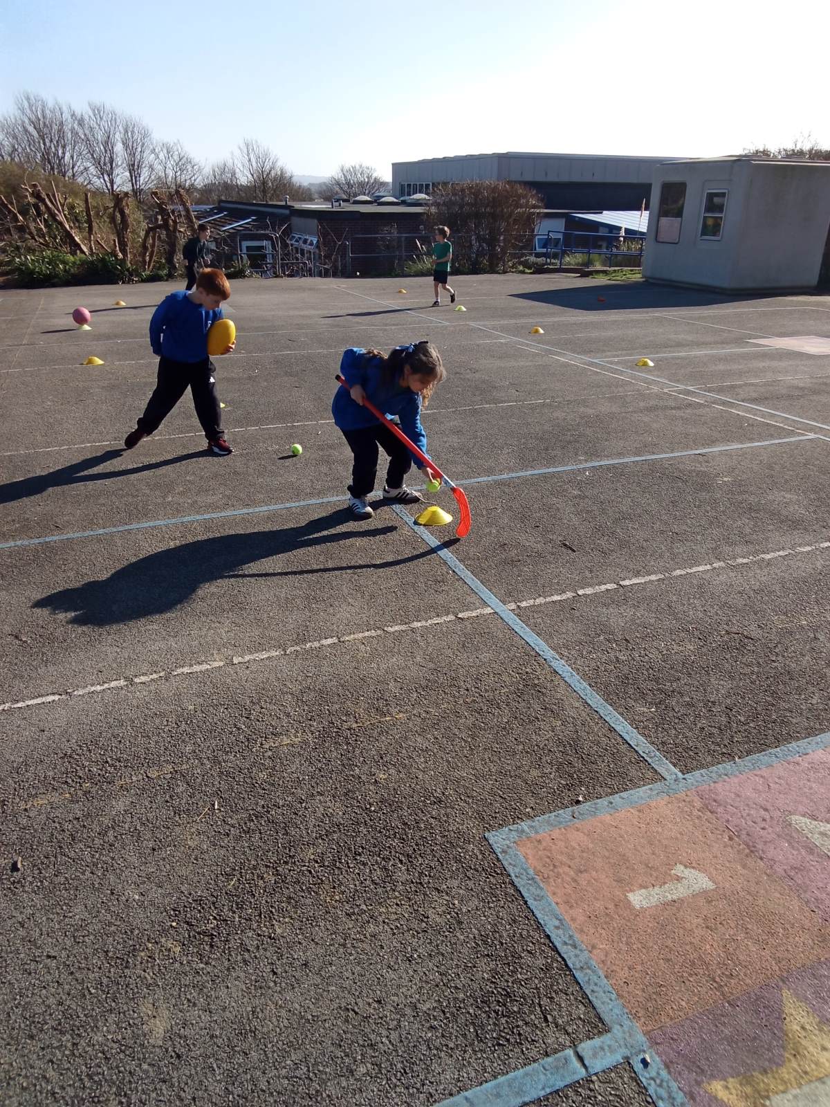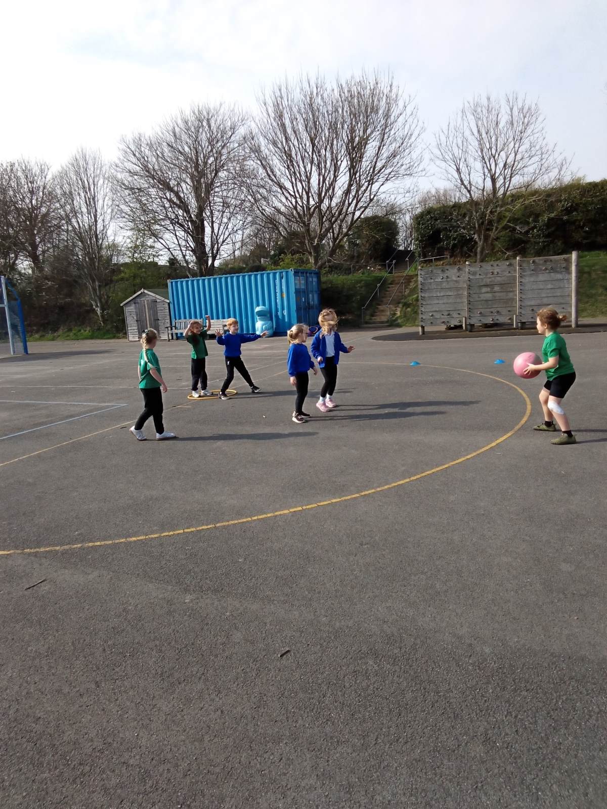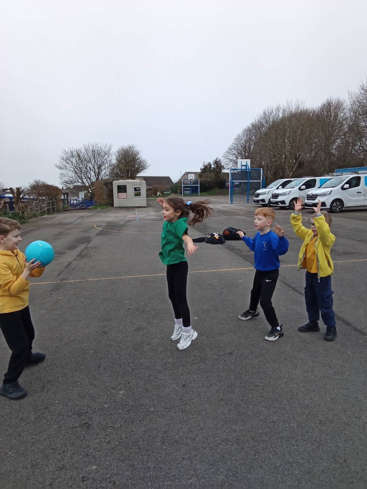 In the photos you can see the children practising scoring using different equipment and working in pairs and teams on attacking and defending. We have enjoyed lots of different games and activities over the half term to develop these skills. Some of the games we played were