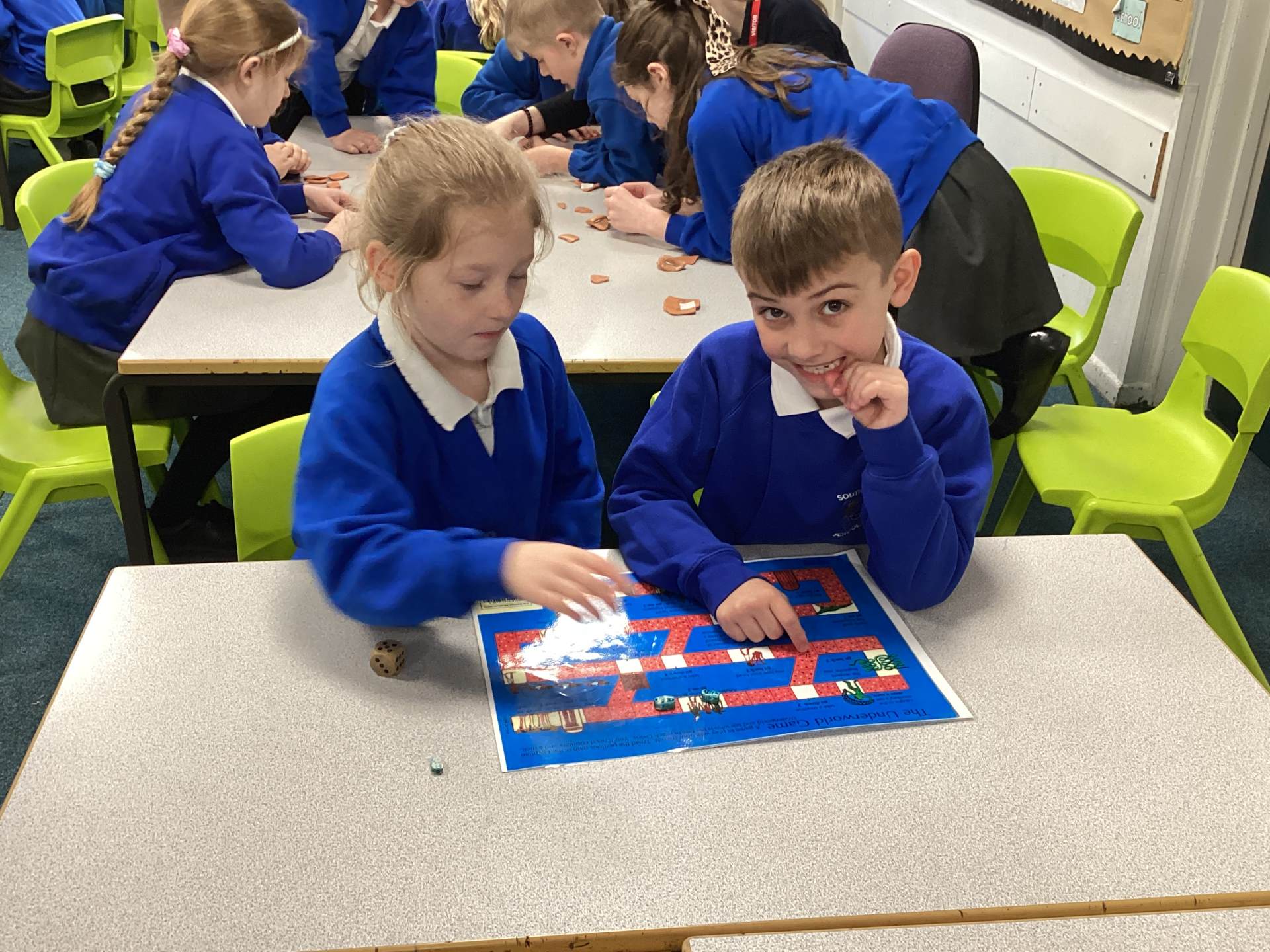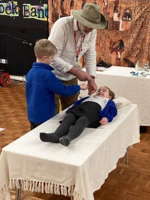 At the end of the day the parents were invited in to a short reenactment of how a body would have been preserved and mummified. One of our pupils was super brave and took on the role of being 'washed', 'rubbed with oil' and 'bandaged up' and as it was ancient Egypt, even had all her organs removed and stored in canopic jars!
