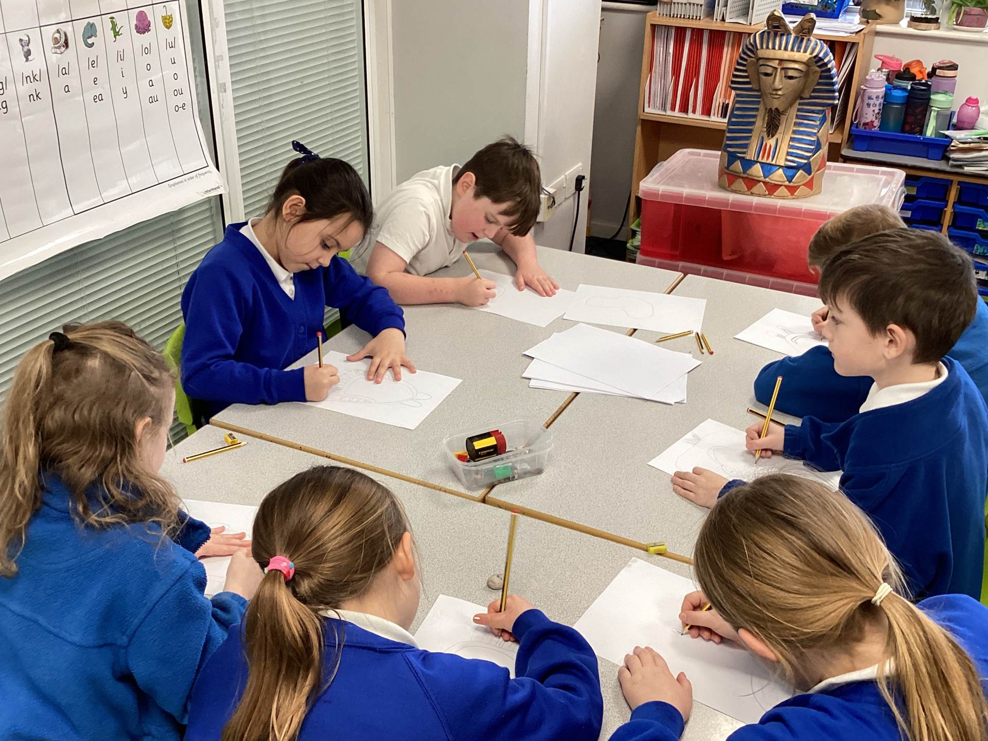 Year 3 started off Spring 2 term with an immersive day with Neil the Time Traveller. The children were transported back to ancient Egypt where they discovered how the ancient Egyptians lived and the roles they had in society. The children looked at artefacts, asked fascinating questions and sketched a mask that would have been painted and put over someone's face.
