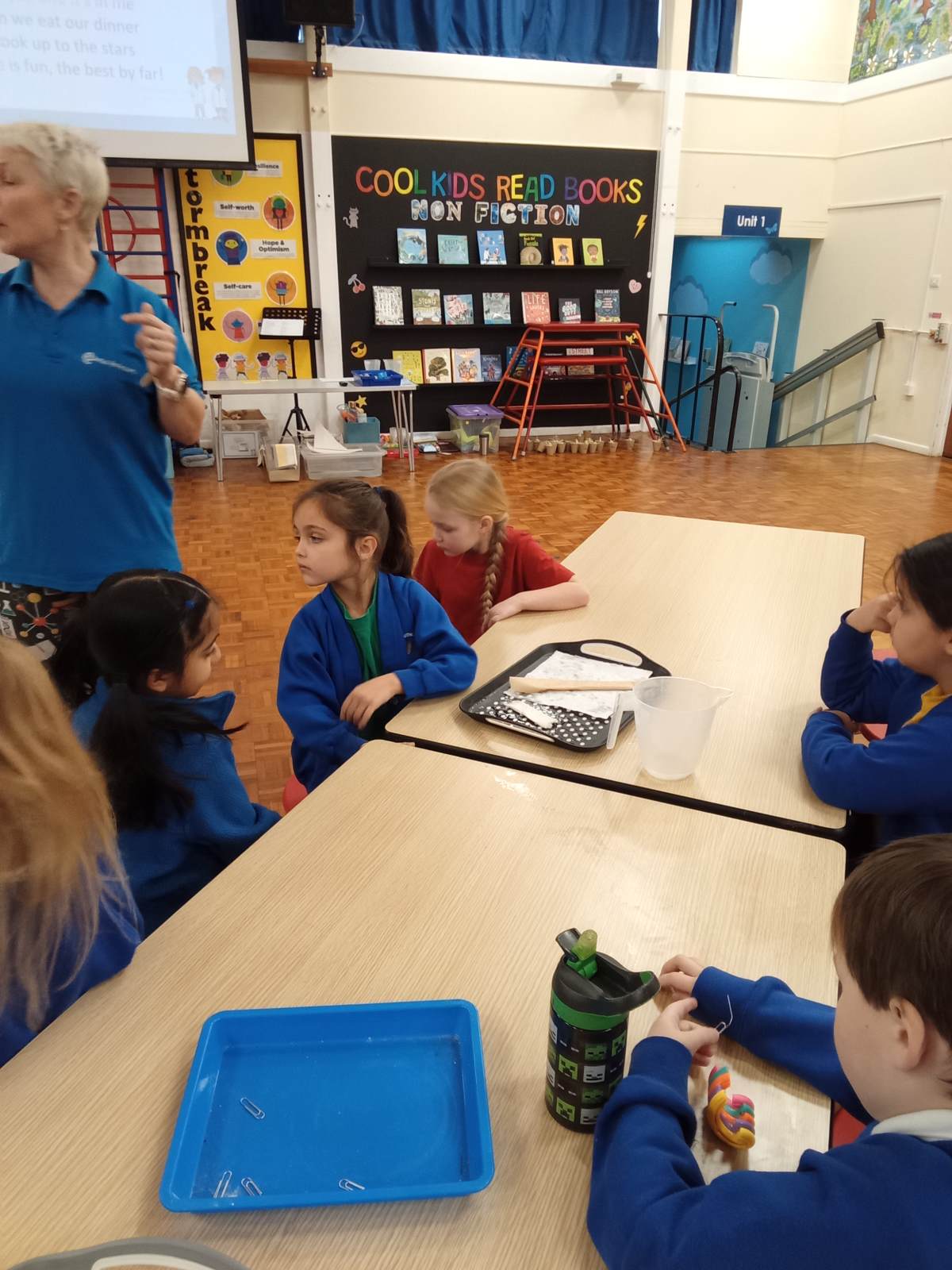 We also looked at different animals and their habitats, we used material to make sand dunes and turned water blue, adding 'ice' with bricks. We decided which animals would be best suited to these environments and why.