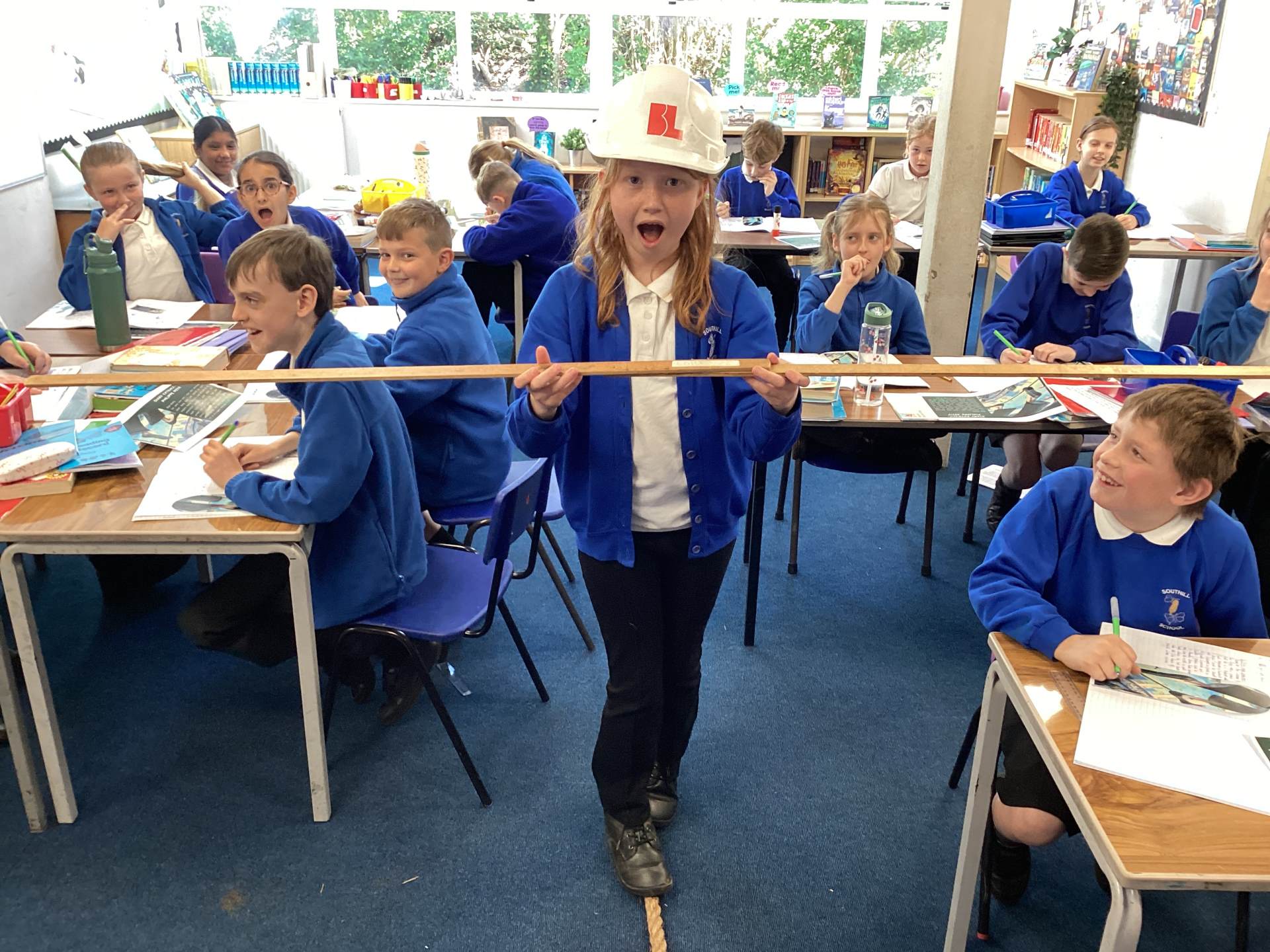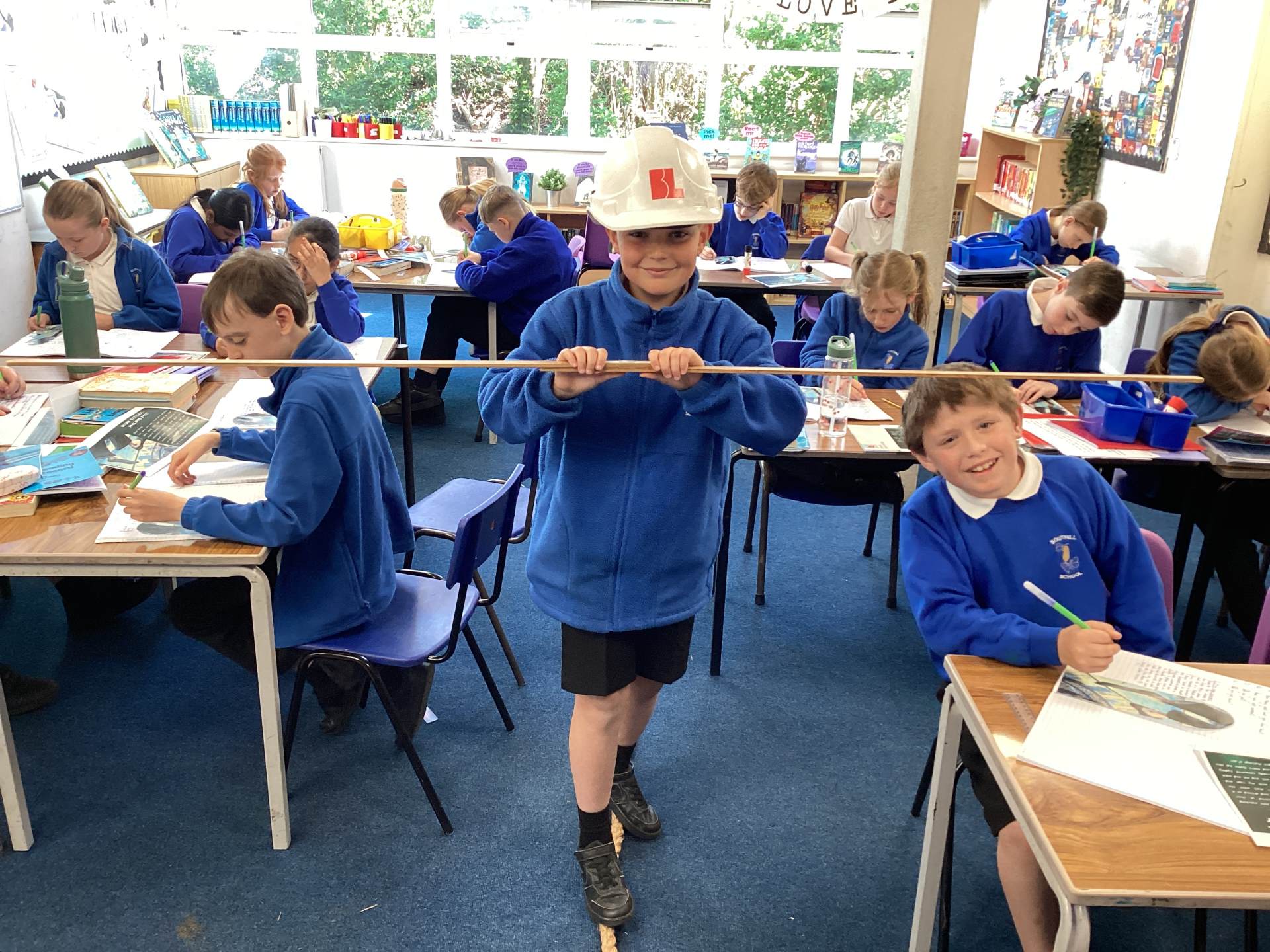 Inside the bag, we discovered a large rope, a hard hat, a map of New York, a picture of Notre Dame and an image of the Sydney Harbour Bridge. We then read a diary entry from Philippe Petit, who described his excitement about secretly entering the South Tower at night to conquer “the biggest challenge of all”.