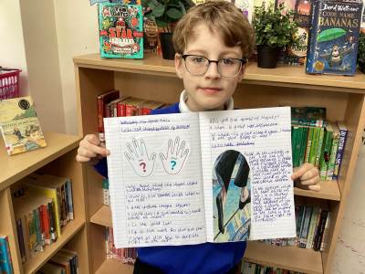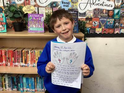 The children went on to write their own predictions, using the clues and cover to imagine what might happen in the story. There is a real sense of anticipation in the classroom as they look forward to learning more about this incredible moment in history.