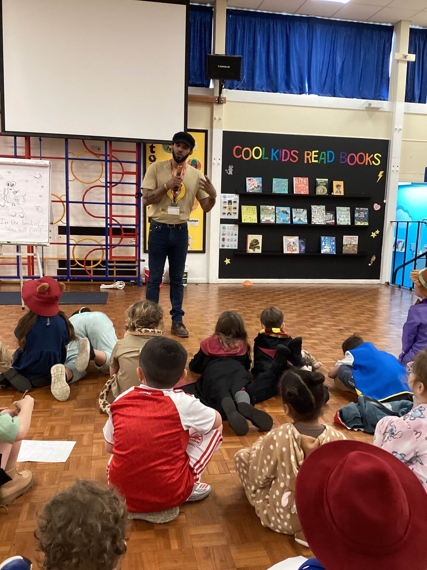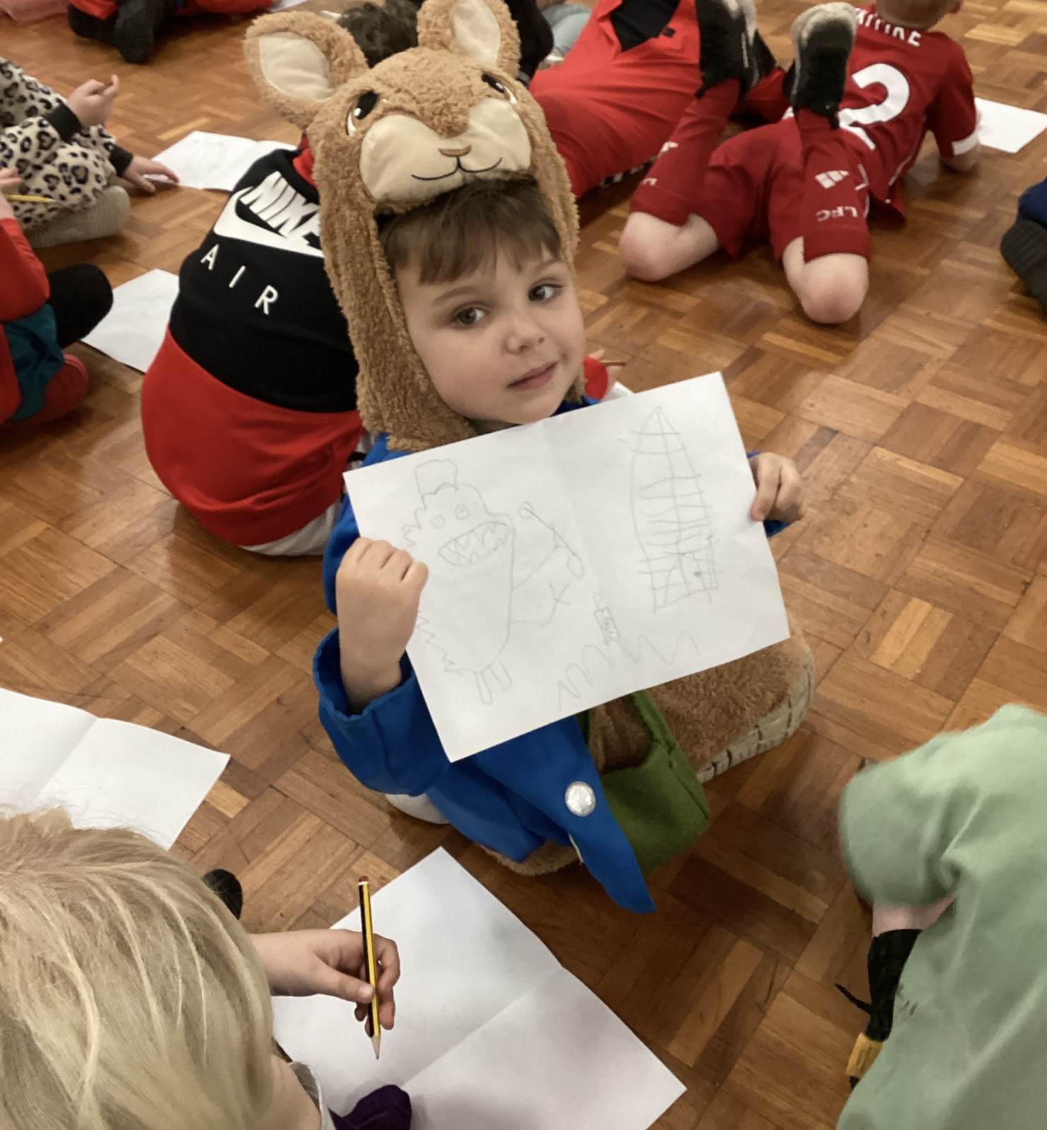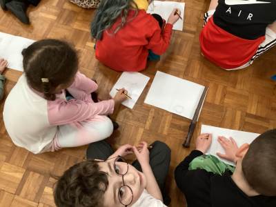 This afternoon was extra special because we had a visit from a real poet, Alex Wharton, who led a creative workshop for us. We listened to his brilliant stories, poems, and songs that made us laugh a lot. Some of our favourites were about toxic slugs and even horses using his toilet-which we thought was absolutely hilarious!