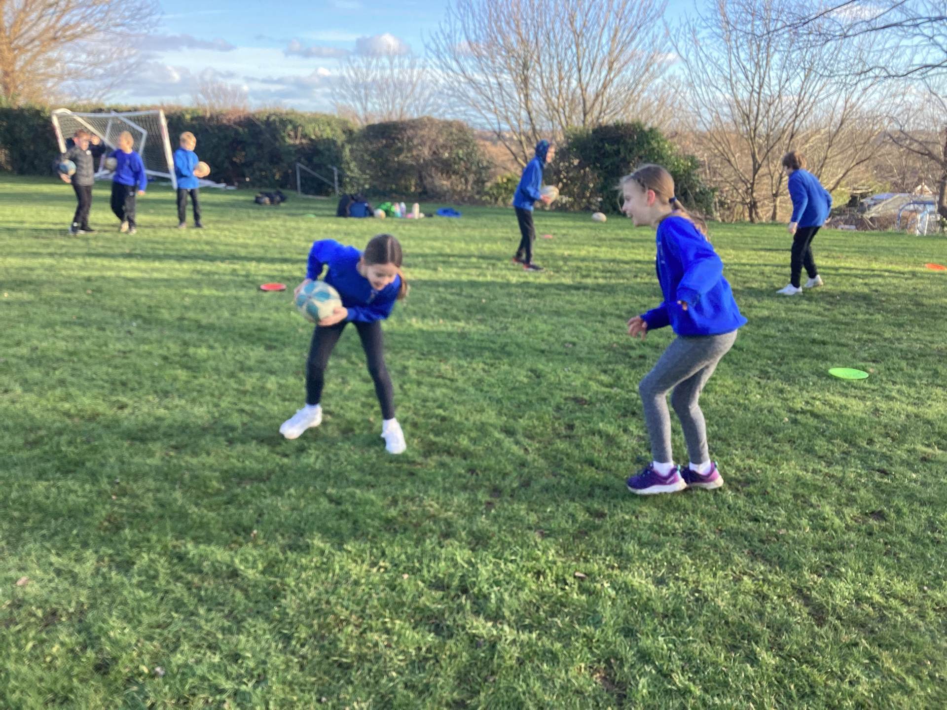 To finish, we added a defender whose job was to tag the advancing player. It was fantastic to see the children dodging their opponents, feinting one way and then scarpering off in the other direction.
