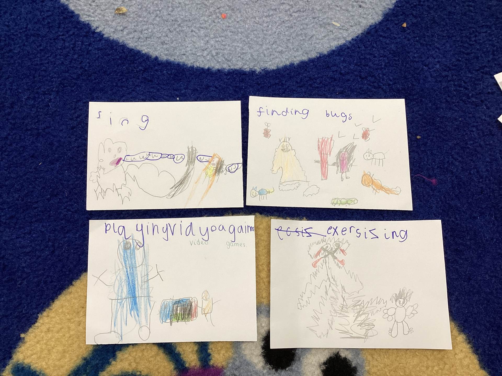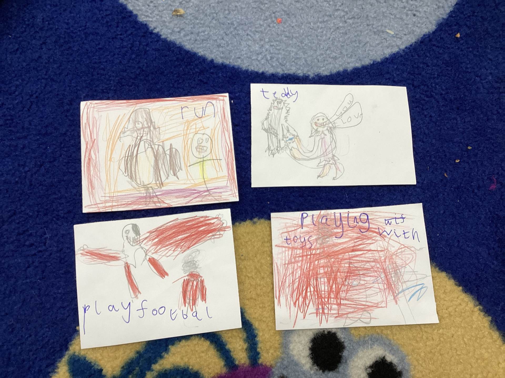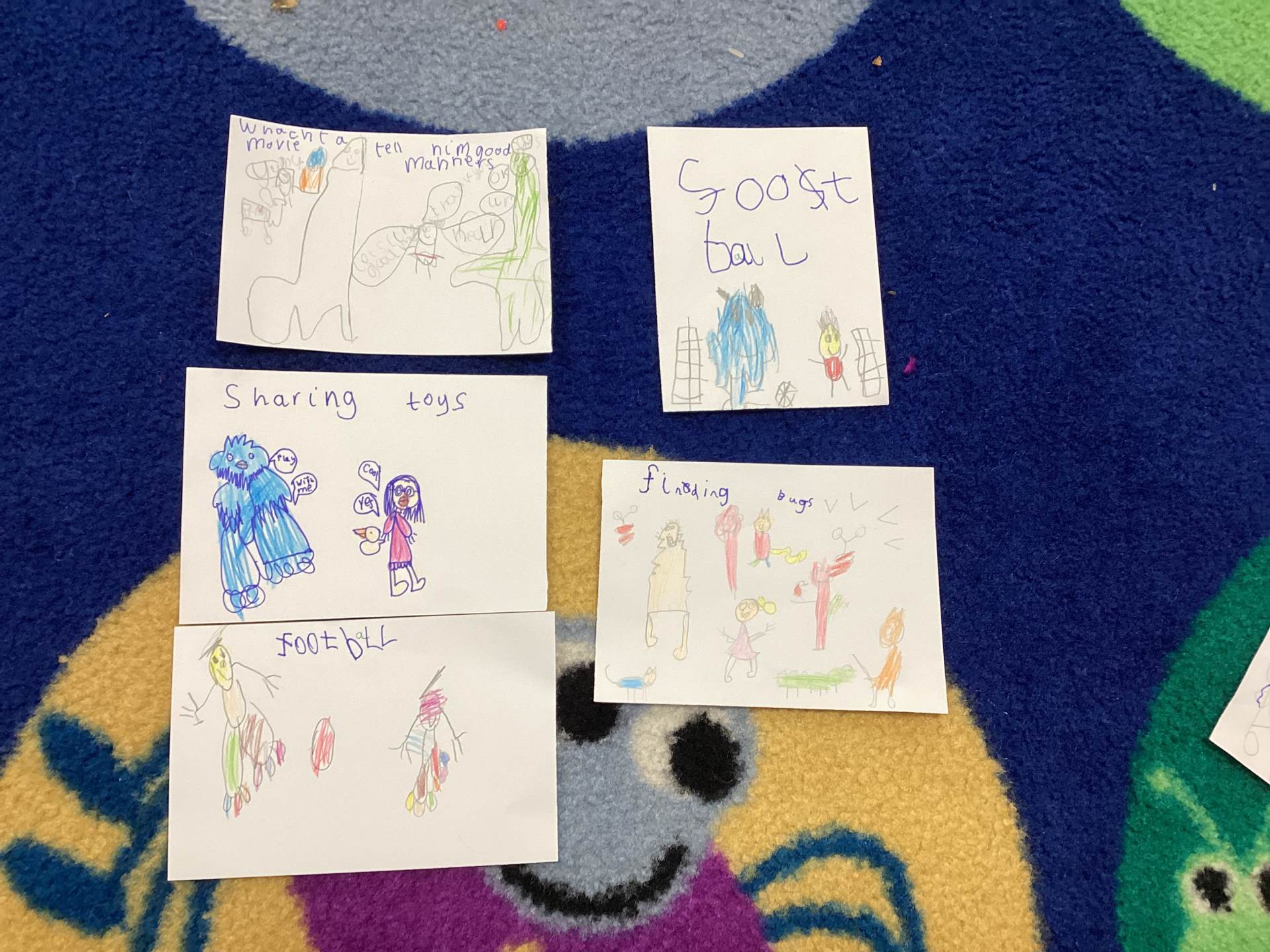 To show Yeti what a wonderful class we are, we decided to make friendship cards. Each child drew a beautiful picture of themselves with Yeti and wrote about what they could do to make him feel happy. There were so many thoughtful ideas. Some children said they would play games with him so he wouldn’t feel left out. Others said they would share their toys, read him stories, give him hugs or tell him a joke to make him laugh.