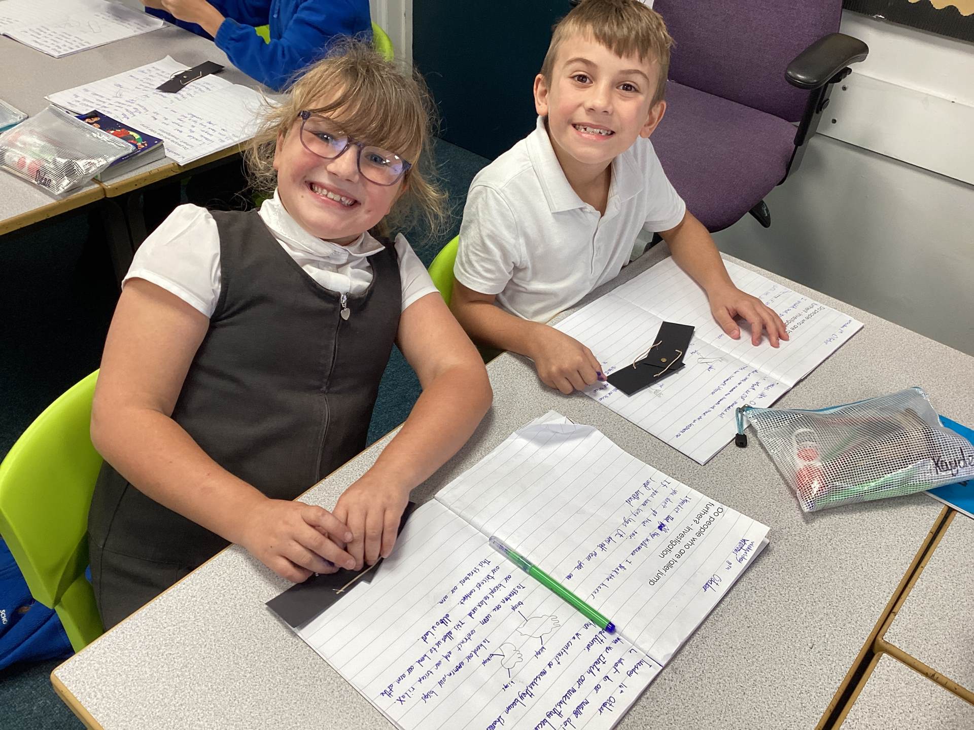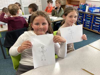 This week the children have enjoyed continuing our science topic Animals including humans. The children have learned how the muscles in the body work relaxing and contracting. They made muscles using strips of card board, elastic bands and some split pins. This week they also looked at joints and made split pin skeletons so the legs, arms and head could move. As the children worked they were heard saying to their friends "You need to attach the femur to the pelvis!" So lots of great scientific language was being used.