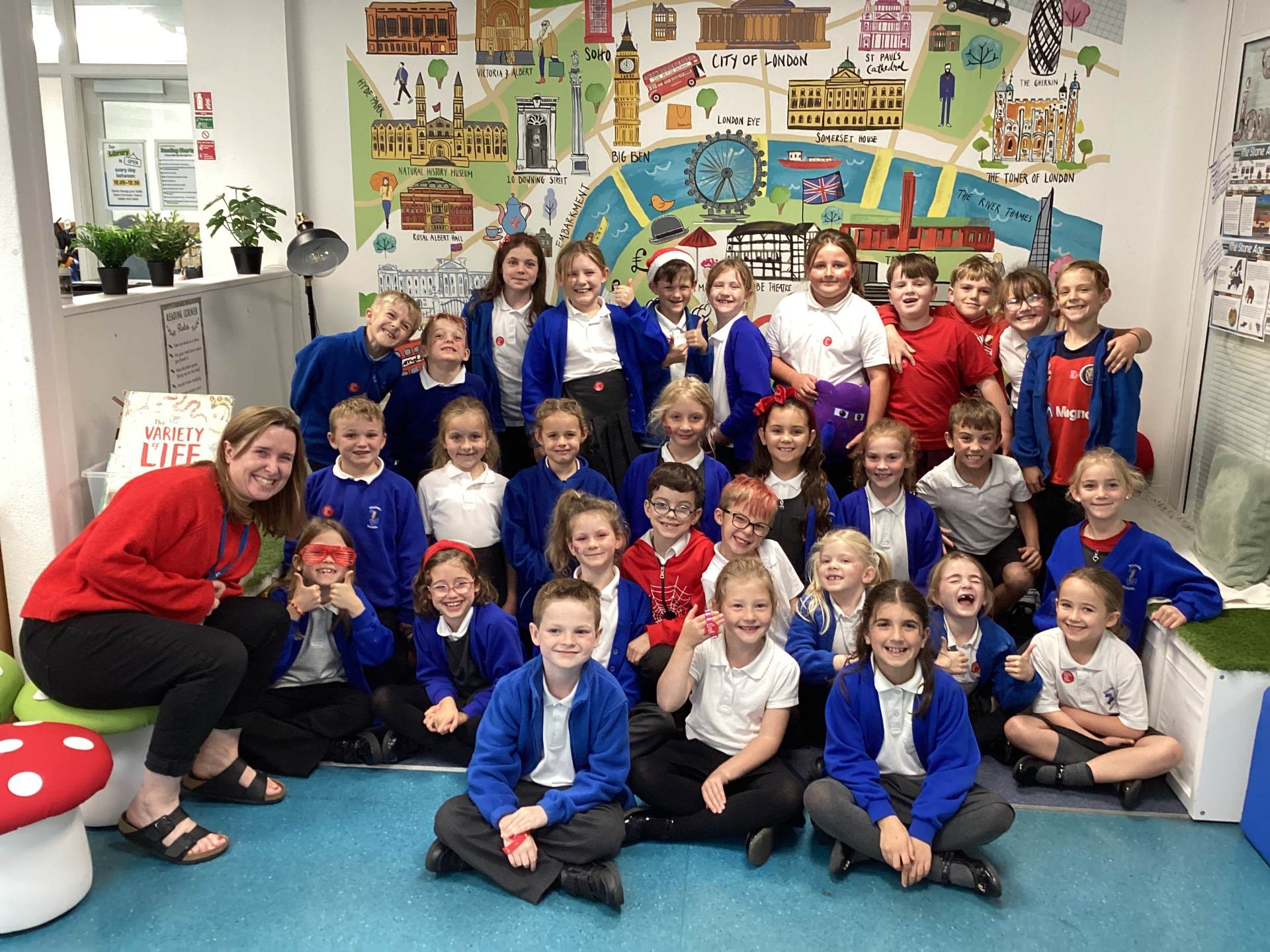 One of the photos is of all the children and Emily who are all wearing red to show their support in standing up to racism!
